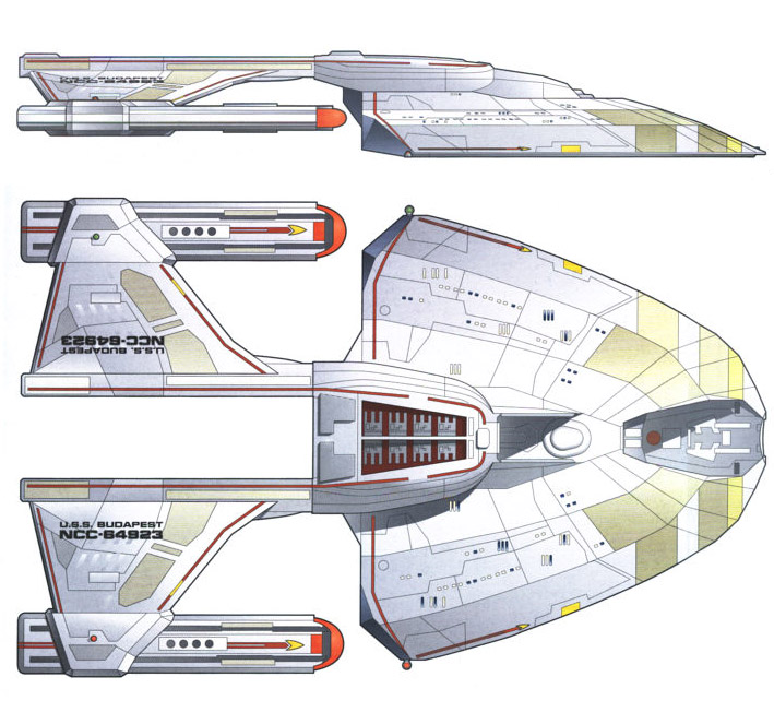 Another ship design created for Star Trek First Contact, the class has been mentioned several times since but has not re-appeared on the screen, ostensibly because the CGI files for the models were lost or corrupted. It’s one of the many ships created in response to the Borg (which, ironically, were pretty ineffective in the Battle of Sector 001).