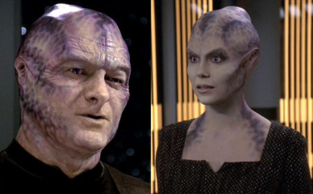 This week is the somewhat ghoulish Kobali, seen once in Voyager epside 6×18 Ashes to Ashes. The Kobali are distinct because they convert the bodies of the dead into new members of their species. Which is very different, but also intriguing.