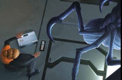 More of the message can be deciphered once the players starship is within three days of Deep Space 6. They receive, “…mander Reed… Space 6. We are in need of immed… The station has been overrun by… They are everywhere. We have already lost one… eaten by… Multiplying at a phenomenal rate. Please send…” The message cuts out and the crew cannot gather more from the message. Gamemasters may spend threat to create complications related to fear and paranoia as the players discuss their theories regarding what is happening on the station.