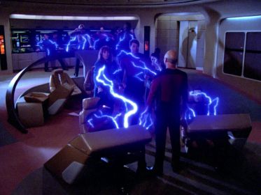 While transporting delegates, an alien life form wreaks havoc on the Enterprise computer and begins to take over the minds of her crew. to guide the ship home.