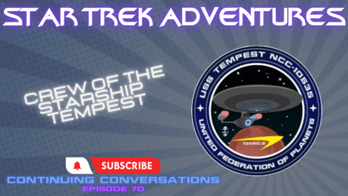 Continuing Conversations interviews the crew of Star Trek: Tempest, a roleplaying game podcast set in the Star Trek universe and using Modiphius’ Star Trek: Adventures roleplaying system. Starship Tempest follows the adventures of the starship USS Tempest, a sister ship to the USS Enterprise-C in the mid-24th century. Starship Tempest is set 25 years before the events of the Star Trek: The Next Generation TV show, in an era that remains mostly unseen in other Star Trek productions.